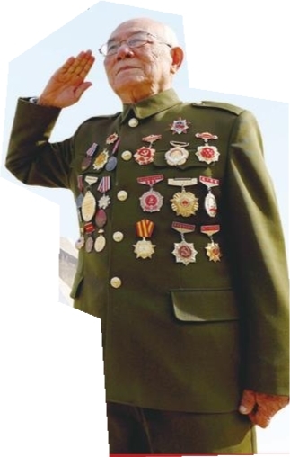 “战场上苦累相伴,生死相随。记得在朝鲜战场的一天,我们去前线慰问演出,途中遇到美军飞机轰炸。当我们要越过一个光秃秃的小山坡时,远处传来了飞机轰鸣声,只听得队长喊‘快趴下!’我毫不犹豫地扑倒在地,觉得靠近地面的胸口突然震了两下。刚跨两步,感到脚下有黏糊糊、软绵绵的东西,打开手电筒一照,全是血。原来走在前面的刘显德被弹片击穿了腹部,由于流血过多,当场牺牲。走在我后面的赵恩良头部被弹片击中再也未能醒来。面对此景,我一时间心情很是悲痛。”