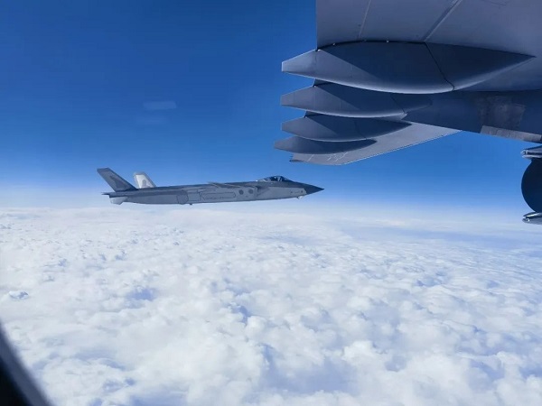11月23日上午,25位志愿军烈士英灵及遗物由我空军专机从韩国接回并护送至辽宁沈阳。专机进入中国领空后,空军两架歼-20战斗机护航。黄灿 摄