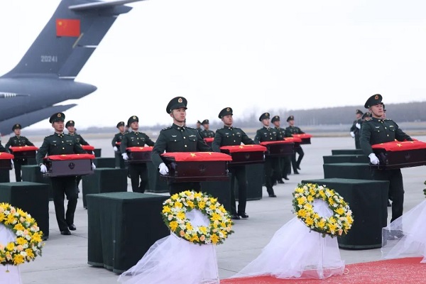 11月23日上午,第十批在韩中国人民志愿军烈士遗骸回到祖国母亲的怀抱,25位志愿军烈士英灵及遗物由我空军专机从韩国接回并护送至辽宁沈阳。