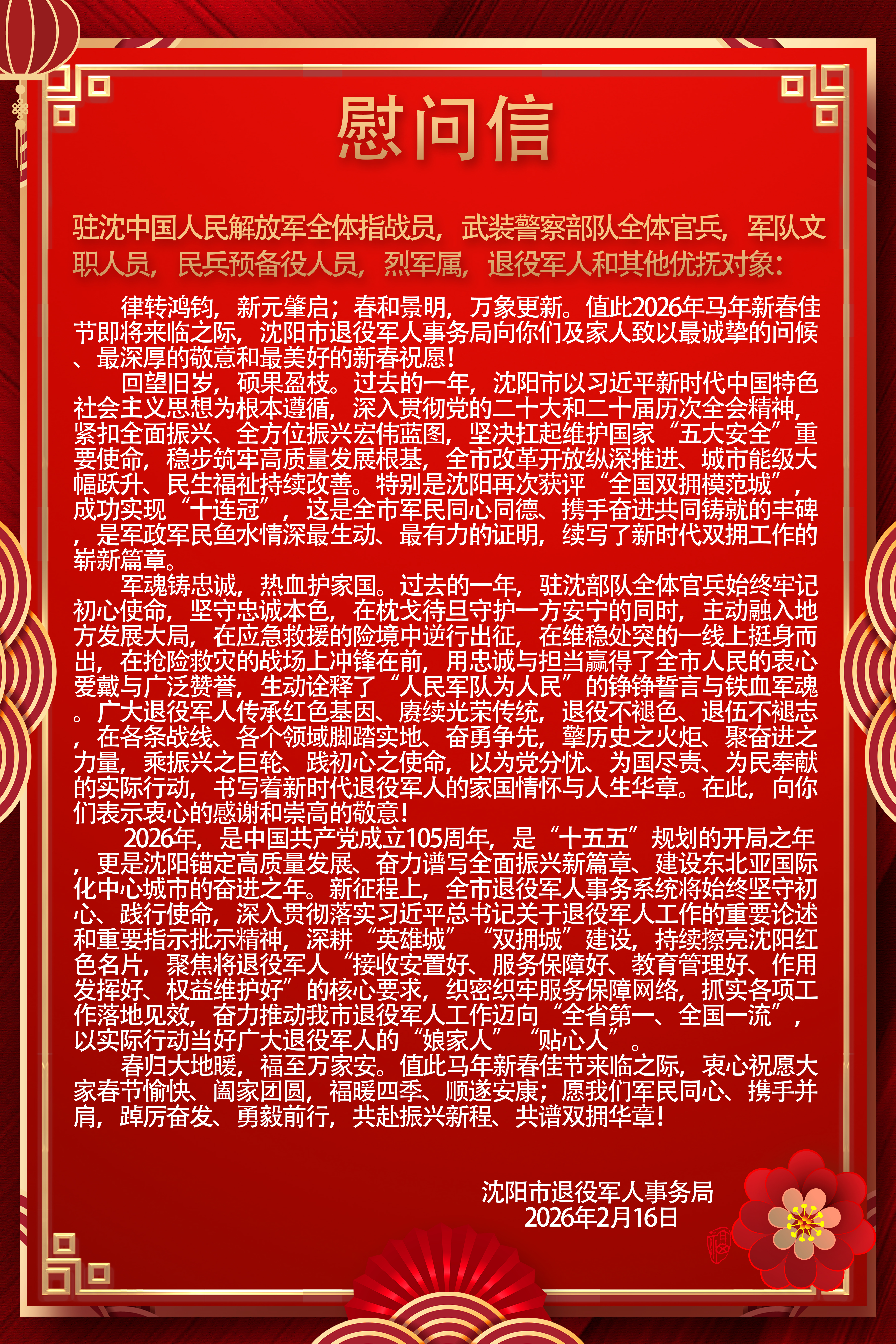 发布时间:2026-02-16 来源:沈阳市退役军人事务局