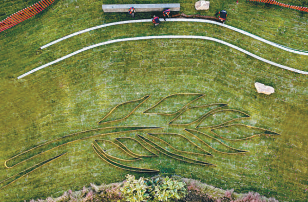 10月27日,工作人员在沈阳街头巨型花坛精心布置,吸引市民目光的同时,让秋日城市更显生机。(张文魁摄)